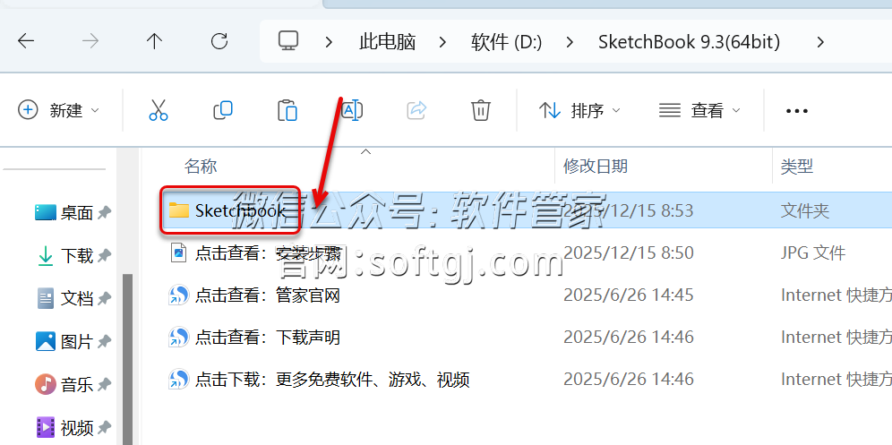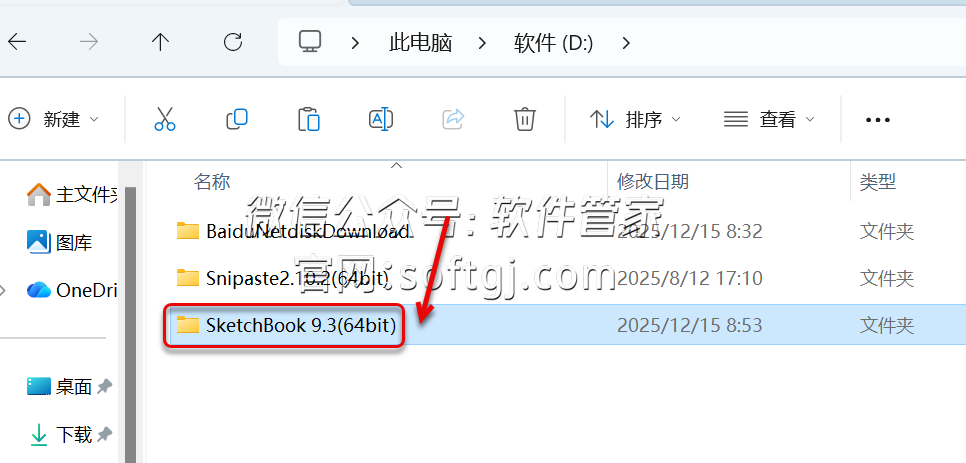 4.双击打开粘贴后的【SketchBook 9.3(64bit)】文件夹。