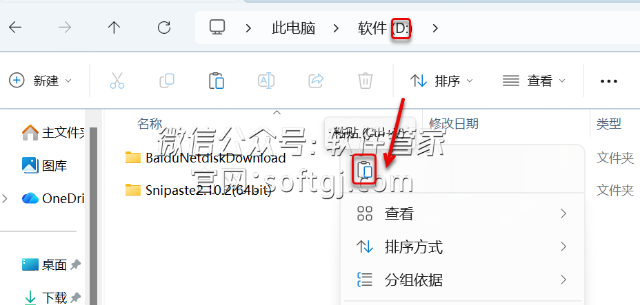 3.打开您需要安装的磁盘(如:D盘)鼠标右击空白处选择【粘贴】。