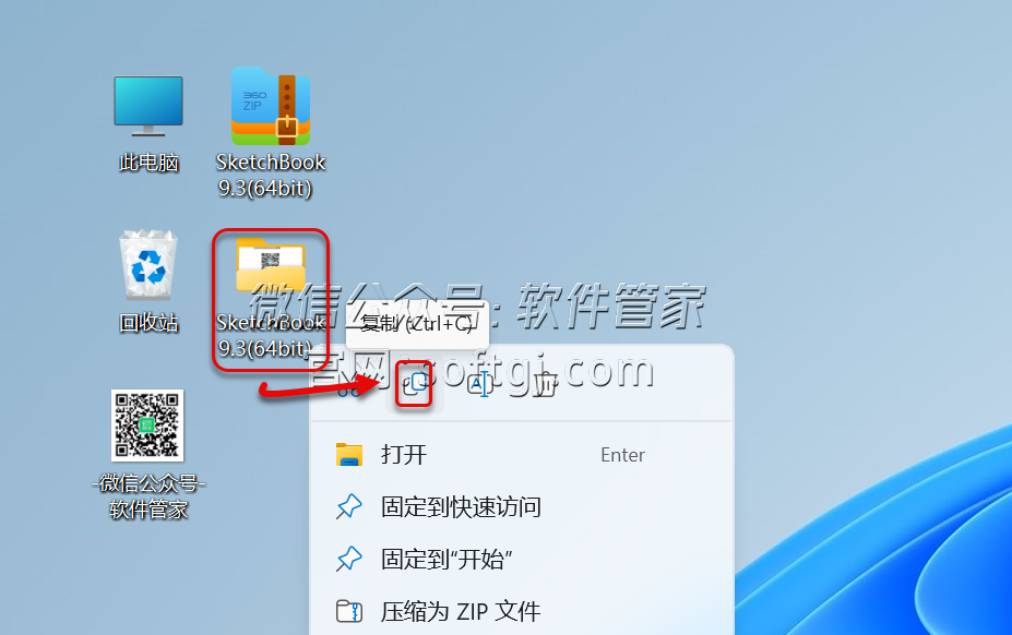 2.鼠标右击解压出来的【SketchBook 9.3(64bit)】文件夹选择【复制】。